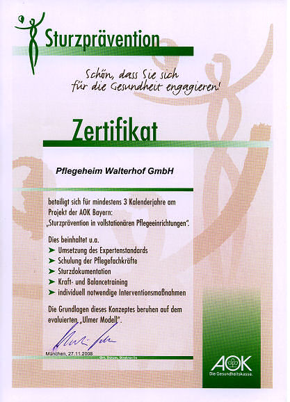 Engagement teil am Projekt der AOK Bayern "Sturzprävention in vollstationären