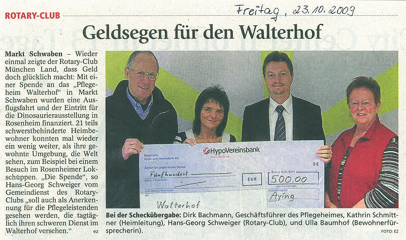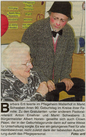 Am 15.06.2010 feierte eine langjährige Bewohnerin des Walterhofs ihren 90. Geburtstag. Die stellvertretende Landrätin Magdalena Föstl und Markt Schwabens Dritter Bürgermeister Albert Hones kamen, um dem Geburtstagskind zu gratulieren.